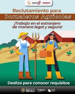 VILLAHERMOSA (CONTRASTE POLÍTICO).-El Servicio Estatal de Empleo abrió el reclutamiento de 80 jornaleros agrícolas para laborar en el extranjero en la cosecha de tomate, bajo un esquema legal, seguro y con prestaciones, como parte de la estrategia de movilidad laboral internacional que busca ampliar el ingreso de las familias y dinamizar la economía local.