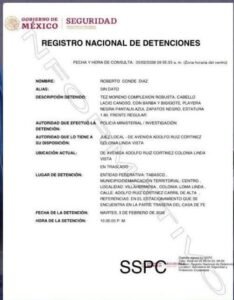 De acuerdo con el Registro Nacional de Detenciones, el arresto de Roberto Conde se realizó el martes 3 de febrero a las 22:36 horas. La congregación se ubica sobre el bulevar Adolfo Ruiz Cortines, a la altura del salón Candiles, en el fraccionamiento Loma Linda. El caso quedó a disposición de las autoridades competentes, que darán seguimiento a la investigación para definir su situación jurídica.