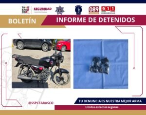 VILLAHERMOSA (CONTRASTE POLÍTICO).-Un despliegue táctico de la Secretaría de Seguridad y Protección Ciudadana y la Fuerza Interinstitucional de Reacción Táctica Olmeca derivó en la detención de dos hombres extranjeros presuntamente ligados a delitos contra la salud en una colonia de alta incidencia delictiva del municipio de Centro.