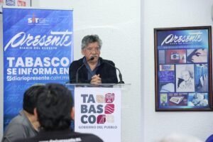 Acompañado por el presidente y director general del Sistema Informativo Tabasco (SIT), Ignacio Cobo González, May Rodríguez destacó que generaciones enteras han encontrado en el Diario Presente una referencia cotidiana para entender la realidad económica, política y social del estado.