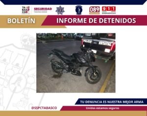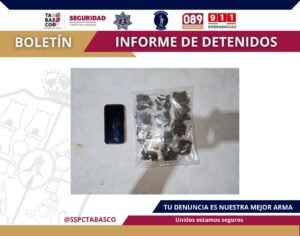 La captura se realizó durante un despliegue operativo en la calle Río Mezcalapa, en la colonia Casa Blanca, como parte de las acciones permanentes de vigilancia y prevención del delito en el municipio de Centro.