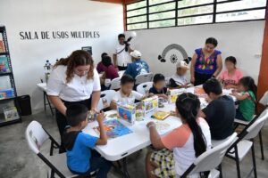 En compañía del alcalde de Macuspana, Gaspar Trinidad Díaz Falcón, destacó que como parte del programa nacional impulsado por la Presidenta Claudia Sheinbaum, los Pilares son espacios de encuentro, en los que se intercambian saberes para que niñas y niños mejoren su aprendizaje y los jóvenes descubran sus cualidades y habilidades, que los ayuden alejarse de actividades indebidas, además que también son lugares para la convivencia de los adultos mayores.