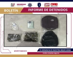 VILLAHERMOSA (CONTRASTE POLÍTICO).-Elementos de la Secretaría de Seguridad y Protección Ciudadana de Tabasco (SSPC), en coordinación con la Fuerza Interinstitucional de Reacción Táctica Olmeca (FIRT), detuvieron a un joven señalado por su presunta responsabilidad en delitos contra la Ley General de Salud de México, durante un operativo en el municipio de Centro.