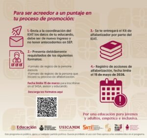 VILLAHERMOSA (CONTRASTE POLÍTICO).-El Instituto de Educación para Adultos de Tabasco (IEAT) invitó a docentes en activo a sumarse a las acciones de alfabetización dirigidas a jóvenes y adultos, como parte de una estrategia nacional para reducir el analfabetismo en el país.