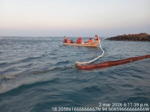 Aunque el incidente no ha sido vinculado hasta ahora con operaciones de Pemex, la empresa desplegó acciones inmediatas de contención en altamar mediante su embarcación Oil Rec, con la instalación de barreras y trabajos de recuperación.