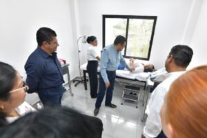 Acompañado por el coordinador del Sistema DIF Tabasco, Víctor de Dios Gómez, y el presidente municipal de Nacajuca, Roberto Ocaña Leyva, el mandatario recorrió las instalaciones y reconoció la labor del personal médico especializado.