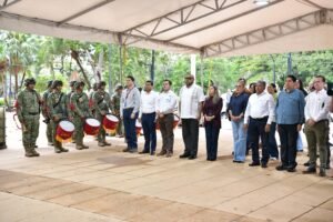 A la ceremonia además asistieron el comandante de la 30ª Zona Militar, Jesús Alejandro Adame Cabrera; el vicealmirante de la Tercera Región Naval, Idelfonso Méndez Gómez; y la secretaria de Cultura, Aida Elba Santiago Castillo.
