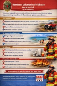 VILLAHERMOSA (CONTRASTE POLÍTICO).-Ante el próximo periodo vacacional, Bomberos Voluntarios de Tabasco hicieron un llamado a la población para reforzar medidas de prevención y evitar accidentes durante Semana Santa.