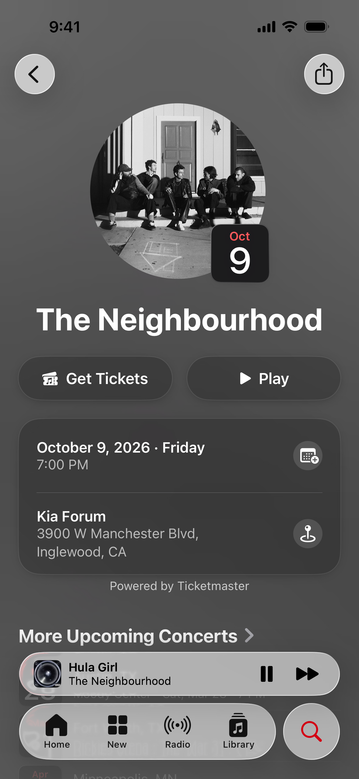 - Una pestaña dedicada de conciertos y la sección Explorar ofrecen un centro para descubrir todos los eventos de artistas