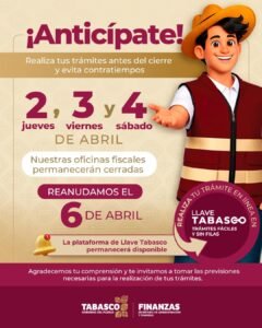 Ante esta suspensión, el Gobierno estatal destacó que la plataforma digital “Llave Tabasco” permanecerá completamente operativa, con el objetivo de que los contribuyentes puedan realizar sus gestiones sin contratiempos y evitar filas.