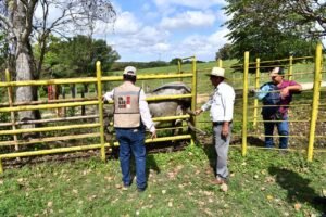 El técnico de la dependencia, Benjamín Escalante Cañas, quien tiene a su cargo un sector del municipio de Macuspana para apoyar a cientos de productores, explicó que asesoran a las y los ganaderos para que vacunen a sus animales, los desparasiten y estén atentos para evitar la presencia de enfermedades como el gusano barrenador.