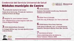VILLAHERMOSA (CONTRASTE POLÍTICO).-A partir de este lunes 13 de abril, Tabasco inicia el registro para la Credencial del Servicio Universal de Salud, un programa que busca garantizar atención médica gratuita a adultos mayores de 85 años.
