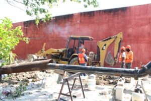 Además, se construye un sistema de alcantarillado sanitario en Frontera y una línea de presión hacia la Planta de Tratamiento de Aguas Residuales en El Tigre, Nacajuca.