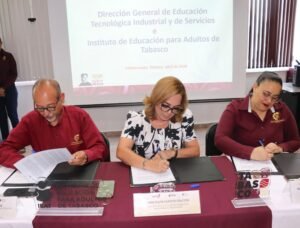 VILLAHERMOSA (CONTRASTE POLÍTICO).-Por primera vez en el país, el estado de Tabasco puso en marcha el modelo de Educación Dual en el ámbito de la educación para adultos, tras la firma de un convenio entre el Instituto de Educación para Adultos de Tabasco (IEAT) y la Dirección General de Educación Tecnológica Industrial (DGETI), marcando un precedente nacional en la formación técnica.