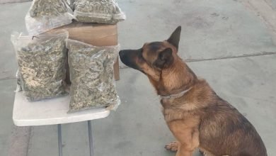 Lomitos policías encuentran mariguana en paquetes de mensajería.