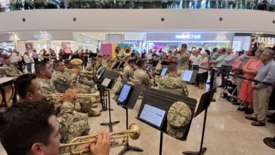 VILLAHERMOSA (CONTRASTE POLÍTICO).-Para beneplácito y gusto de visitantes de Plaza Altabrisa, integrantes de la Banda de Música de la VII…